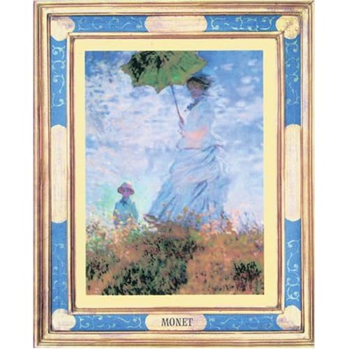 This title is one in a series presenting four masterpieces by four immortal French impressionist painters. Each miniature book faithfully reproduces its title painting on the front cover, and is packaged in a handsome slipcase that doubles as a picture frame. The frame can stand up on a desk or tabletop or be hung on the wall to display the book cover’s striking painting. Each book’s interior discusses its title painting, describing the artist’s approach to his work, analyzing the picture’s fine points, and showing close-up details from the painting. A final two-page spread presents a timeline capsule biography that lists significant events in the painter’s life. Monet—Woman with a Parasol, shows and discusses Claude Monet’s techniques as he captures his subject dramatically from a low-angle perspective. This beautiful painting, which dates from 1875, hangs in the National Gallery of Art in Washington, D.C.